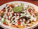Tortilla chips topped with pico de gallo, sour cream, cotija cheese, choice of salsa "Red or Green" and 1 egg. Served with steak or chicken adobado.