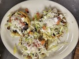 Chicken rolled taquitos topped with lettuce, pico de gallo, cheese & sour cream.
